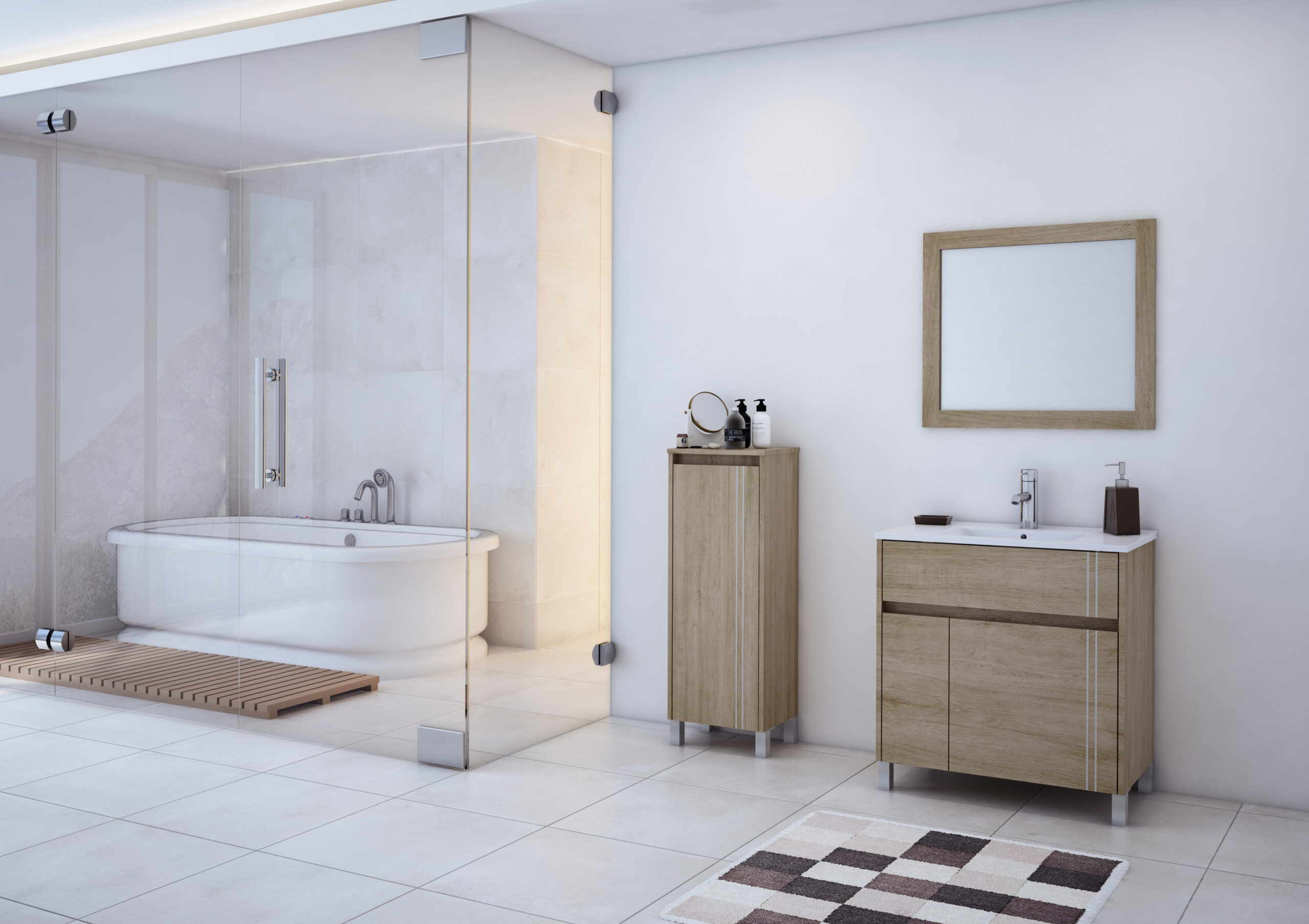 Nature intoniza calidez y funcionalidad para tu baño. Aporta diseño y gran espacio de guardado para diversas utilidades.