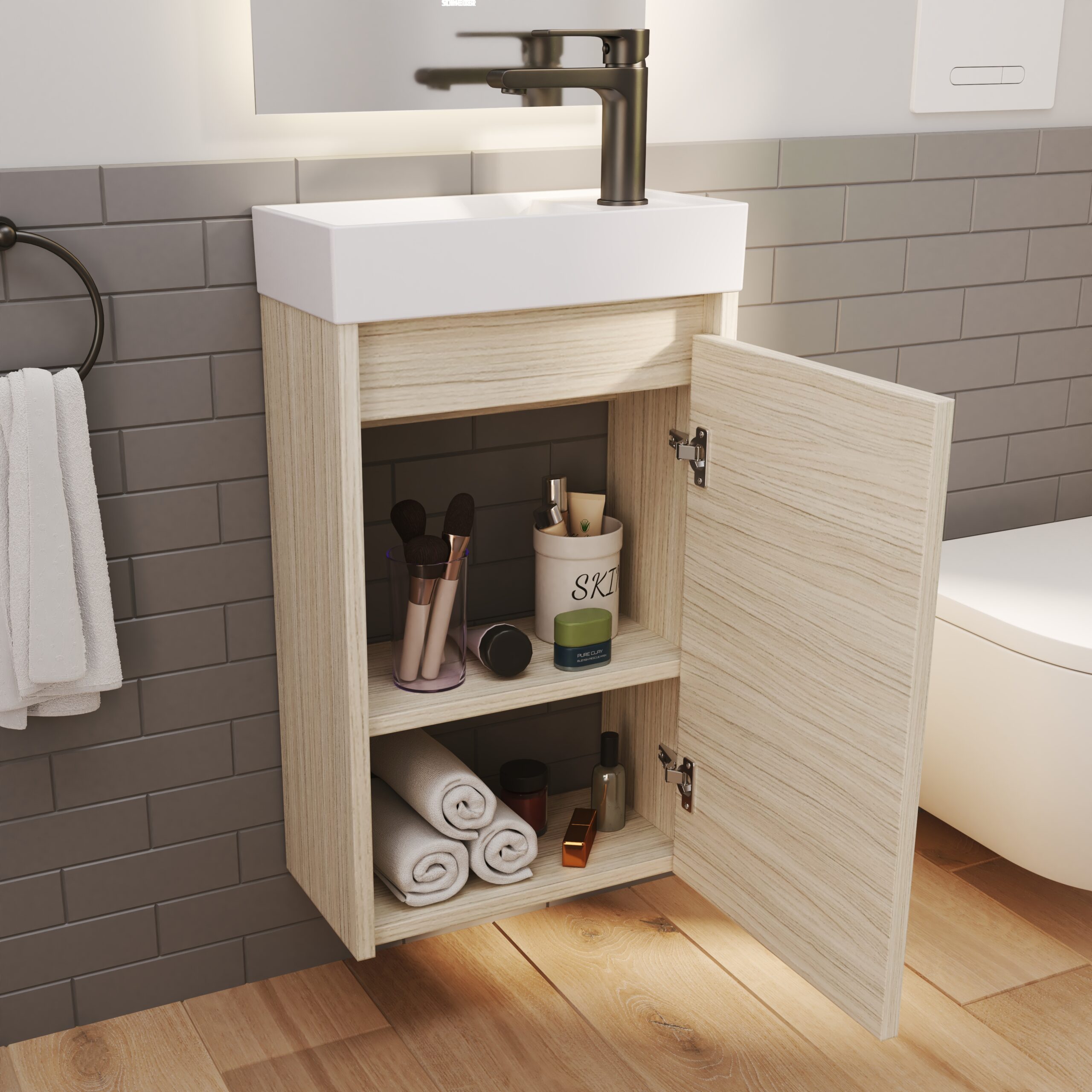 Mueble minimalista y fresco, pensado para maximizar espacios pequeños. Sus líneas simples y colores expresivos transmiten orden y calma.